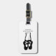 Ett bagagemärke med en svart illustration av en balettdansare tofflor och hennes nedre ben som är genomskinliga och som gör det möjligt för färg i bakgrunden att visa sig. Ballerina står på sina tår, en pointe.