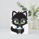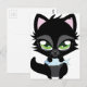 Cute Black cat and fish Vykort
