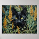 Cute Black Cat and Flowers Poster