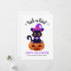 Lägg till din egen speciella beröring till den här roligten Halloween-designen med ett sött svart kattunge med en lila häxhatt och sitta på en karvpumpare med ditt namn tillsammans med ord "bus eller godis" i ett modernt typsnitt och "Happy halloween" i ett lekfullt typsnitt.