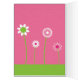 Ett blankokort med en originalbild från Mango Måne av en svart katt som tittar på en fjäril bland vita blommor.