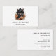 Affärskort med en söt illustration. En svart, långdragen katt som bär en svart häxhatt. Öron pockar ut. Omgiven av orange och bruna höstblommor. Fantastisk-design för häxtemaobjekt och Halloween.