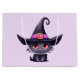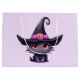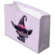 Giftväska med en roligt Halloween-illustration för kattälskare. En svart katt med stor svart katt som bär en stor svart häxhatt med en purpur rosa bälte runt bommen.