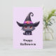 Cute Black Cat med ett Witch-Hat Halloween Julkort