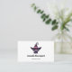 Affärskort med en roligt Halloween-temaillustration för kattälskare. En svart katt med stor svart katt som bär en stor svart häxhatt med en purpur rosa bälte runt bommen.