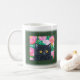 Cute Black Cat med färgade blommor och kattkonst Kaffemugg