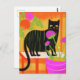 Cute Black Cat med Grönt Rand i hushåll Vykort