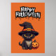 Cute Black Cat med Pumpkin Jack o lantern Poster