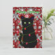 God jul! - Söt svart katt med julrött och grönt twinkle ljus och svartvit glitter snöflingor - anpassade! Och design överförbar!