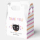 De här roligtarna har en svart katt i hand plockade med pastellaccenter, med stjärnor, rand och modern formaterad flerfärgad typografi, "TACK". Pastellskuggor av rosa, lila och persikor står ut mot den vita bakgrunden. Två textmallar ingår för enkel anpassning! Underbar för en flickas Halloween-inspirerad födelsedagsfest! *Bild av Orabella Prints.
