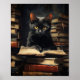 Cute Black Cat Reading a Book Poster