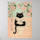 Cute Black Cat Reading in Bathroom Poster