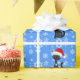 Den här helgdag som är papper har en söt svart siamesisk katt som bär en julhatt med blå och vit snöflingbakgrund. Viss grafik efter artwork©delightful-doodles.com *