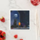 En söt svart katt sitter på en bord-gazing vid ett tänt ljus. Bord ligger också vid bok, goblet, flaska, bröst, hatt och kristaller boll med en kråka sitta ovanpå. Ett fullt ligger i fönstret på scenen.