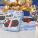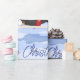 En söt svart med tricolor Welsh Pembroke corgi som bar en julklump i snö.