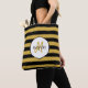 Säg hej till sommaren med den här söta svarta och gult rand bin rand mönster till väskan. Anpassa genom att lägga till ditt namn och inledande monogrammet.