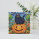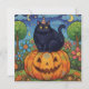 Cute Black Halloween Cat och Pumpkin Julkort