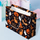 Sömlös mönster i Halloween illustrerade tecknaden på svart bakgrund. Tecknade figurer omfattar pumpor, spöken, fladdermus, kandiser, spindelnät och stjärnor. Ikonerna ritas alla i ett enkelt, karikatyrartat stil. Mönster upprepas sömlöst, så att det kan användas för att fylla ett stort område, t.ex. en vägg, ett tyg eller ett biet av pappra. mönstren är bra för hattar i party, för att slå , för att slå in säckar och annat. Prova den här hallopolpresentpåsen, du kommer inte att ångra det. Du kan överföra den här designen till alla zazzle-produkter som du vill om du vet hur, eller skicka ett meddelande till mig. Jag överför den här designen åt dig.