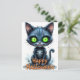 Cute Black Kitten Halloween Whimsical Cat Lover Vykort