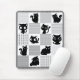Svart kattungar med grått och vit mönster-musknapp En enkel musknapp i svartvitt i kombination med grått och vitt mönster i form av en kartong där mönster växelvis med en söt svart kattunge på en stripe bakgrund. Ett idealiskt val av födelsedag, helgdag för dina kära som också är kattälskare.