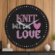 Mysigt upp ditt skugga med den här charmerande väggklockan som innehåller frasen "Sticka med Kärlek" i en maskeffekt av rosa garn-stil på en fet svart bakgrund. Perfekt för trikårer, kroketrar eller någon som kärlek handgjort skapelser, den här klockan lägger en varm, personlig beröring på alla studion, vardagsrum eller hantverkshörn. Dess moderna kontrast och texturerade utformning gör att den både fångar öga och hjärtfilt - en perfekt gåva till garnet älskare!