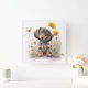 CUTE BLACK & TAN KORT HAIRED DACHSHUND HUND FYRKANTIG KLOCKA