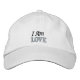 Personlig, vit basebollkap, "Jag är Kärlek", med svart och rosa broderier. En coola-födelsedagspresent.