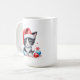 Vit och svart kattunge som bär jultomtens hatt sitta bland Juldekorationer.