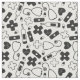 Fabriker för sjuksköterskor, läkare och hälso- och sjukvårdspersonal med mönster av steoskop, medicin, termometrar, band-aids och hjärtan i svart mot vit bakgrund.
