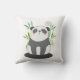 En kudde med en illustration av en svart och vit pandabjörn sitta i en grönt vattenfärgsbambu. Lite tal bubbla med ett hjärta inuti. Utformning med en panda som uttrycker hans kärlek.