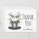 Ett platt tackkort med en illustration av en svart och vit pandabjörn sitta i en grönt vattenfärgsbambu. Lite tal bubbla med ett hjärta inuti. Cute panda som uttrycker hans kärlek. Meddelande på baksidan som du kan anpassa.