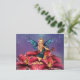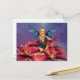 Fantasy-kort med en söt blonde sitta i en bukett med röda orkidéer.