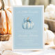 Cute Blue A Little Pumpkin Boy Shower-inbjudan. Fira att lite pojke kommer att komma med den här beundransvärda babyduschinbjudan! Den här inbjudan är ett charmerande höstblått pumpformat med ett sött blått elegant och ett skript, och är perfektens sätt att hedra den blivande mor. glädjen och upphetsningen med vänner och familj genom att skicka ut denna söta och speciella inbjudan i dag!