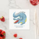 Tema för Cute alligator födelsedagsfest papper napkin med en illustration av en blå krokodil med en party-hatt med texten "Chomp, chomp". Perfekt för en pojkes party på sommaren.