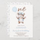 Cute Blue Brown Beary First Birthday Bear Birthday Inbjudningar