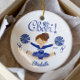 Blunette Cheerhead Ornament, blå och vit Cheer Cute Blunette. Enkel att anpassa med ditt namn och datum. Besök vår butik för att se detta prydnadsämne i en mängd olika färg och hår färg i skolan