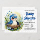 Cute Blue Elegant Bird Boy Shower Inbjudningar