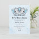 Cute Blue Elephant Twins Baby Shower Invitation Tack Kort