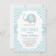 Inbjudan till Cute Blue Grått White Elephant Boy Baby Shower | Chevron Baby Shower-inbjudan