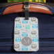 Cute Blue Grått Uggla Mönster Monogram Bagagebricka