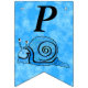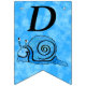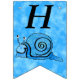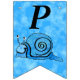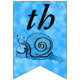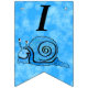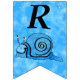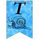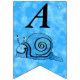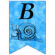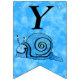 Den här flagga-formade buntbanderollen Grattis på födelsedagen är en blandning av akvblåa skuggor med en söt, mönstrad tecknad snigel som ler och har runt vitt ögon. Anpassa födelseår med mallarna.