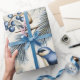 Cute Blue jul Bird, Berries, Blommigt Presentpapper