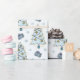 Den här julklappen i roligt har en vit bakgrund med en söt mönster av Julgranar och presentlådor i blått. Det är perfekten som slår papper för barn.