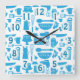 Cute Blue Kitchenware Cooking Verktyg Mönster Art Fyrkantig Klocka