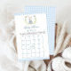Sofistikerat klassiskt "Bingo"-spel designat för en dusch i pojke, försedd med en charmbunny omgiven av blåa blommor och gingham mönster. Förlovad dina gäster med detta fina spel, perfekt för att lägga till roligt och upphetsning till firande samtidigt som du skapar omhuldade minnen.