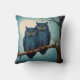Cute Blue Pair Uggla sitta vid gren Kudde