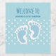 Cute Blue Pojke Feet Illustration Baby Shower Vinflaska Etikett