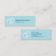 Mini-affärskort med en charmerande bild av blå pojke fotavtryck med en vit kontur. Vit polka dots mot baby blue bakgrund bakom illustrationen.