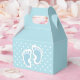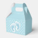 Favoritruta med en charmerande bild av blå pojke-fotavtryck med en tung vit kontur. Vit polka dots mot baby blue bakgrund bakom illustrationen.