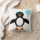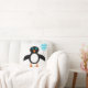 Den här fantastisk-kudden har en söt tecknad av en blå penguin med blått öga, lite orange och en vit tumme. Penguin håller en pulverblå ballong. Det finns en blek blå text i ballongen som säger "Pojke". Det här är perfektens gåva för att fira ett nyfött pojke.